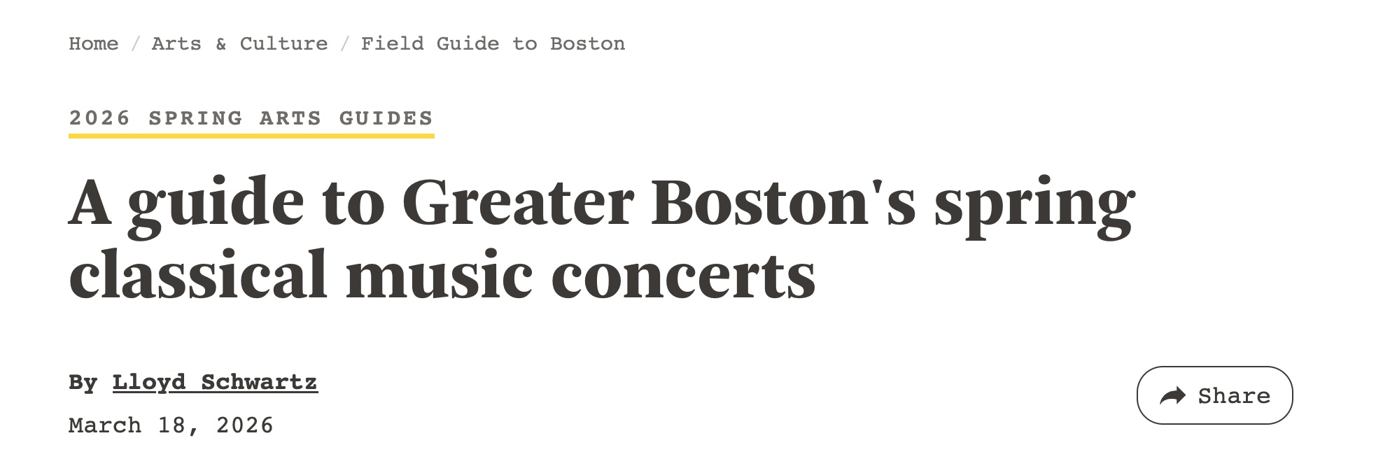 A Far Cry‘s upcoming May 9th concert with Karim Sulayman, including the premiere of The Strangers’ Case, is featured in the WBUR’s A Guide to Greater Boston’s Spring Classical Music Concerts.